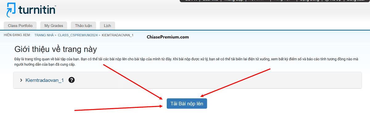 Giao diện tải báo cáo Turnitin