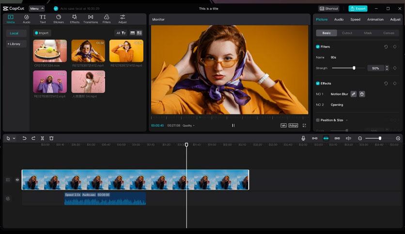 Chọn từ các hiệu ứng và bộ lọc có sẵn trong CapCut để làm video của bạn thêm phần sinh động và hấp dẫn. Bạn có thể thay đổi màu sắc, ánh sáng, và tạo các hiệu ứng chuyển cảnh mượt mà.
